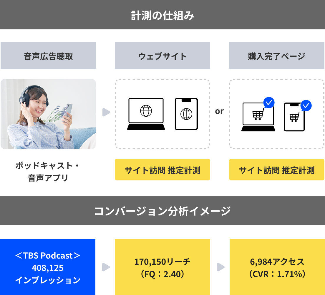 『Spotify Ad Analytics』を用いて、サイト訪問・アプリダウンロードなどのコンバージョン計測が可能です。