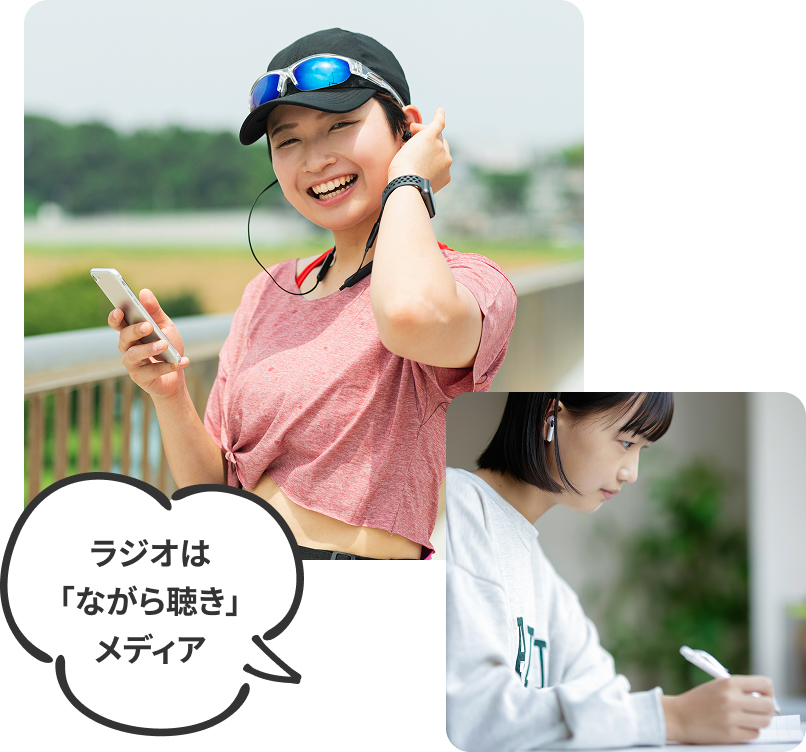 - 追いかけ再生ができる「radiko」やアーカイブ型のプラットフォーム「Podcast」の普及により、時間やエリアに縛られることなく楽しめるメディアに。聴取の入り口が広がり、新しいリスナーも増えています。