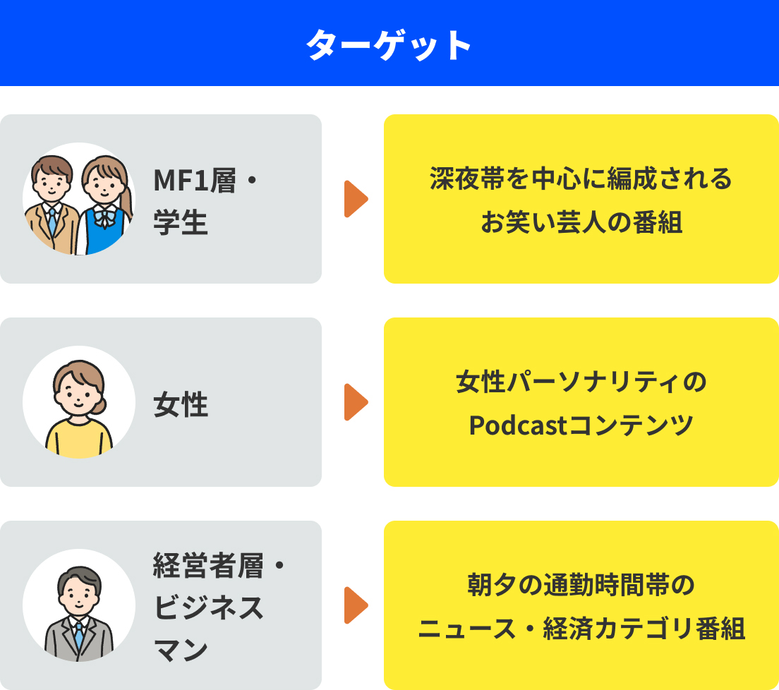 ラジオは、番組ごとにリスナー属性や相性の良い商材が色濃く分かれるメディア。